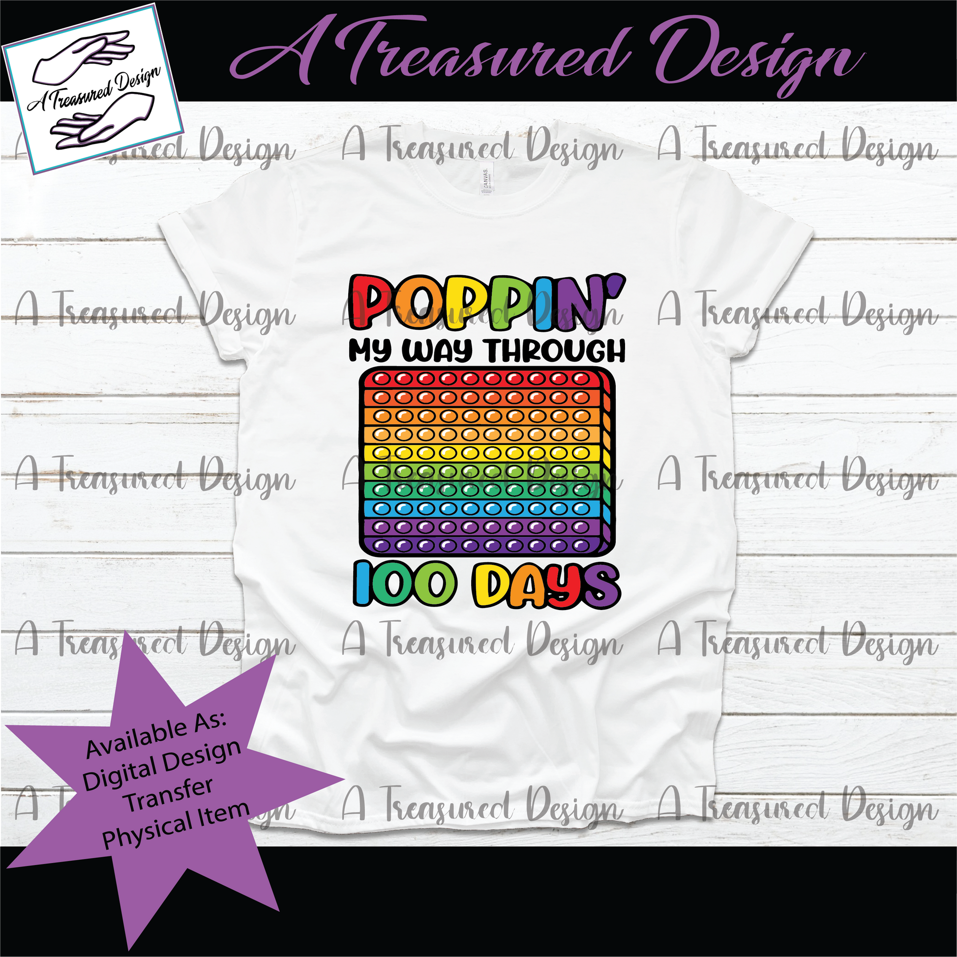 Looking for high-quality school related heat transfers? Look no further than A Treasured Design LLC! Our "100 Days Poppin " heat transfer design is perfect for celebrating a milestone.