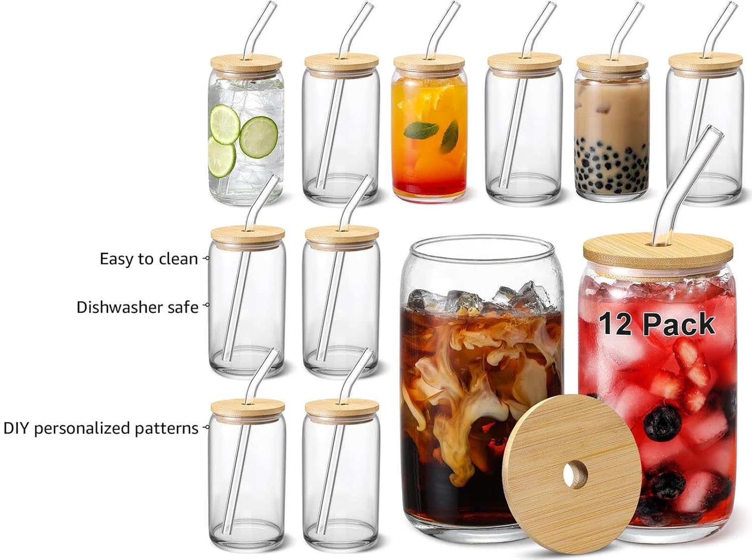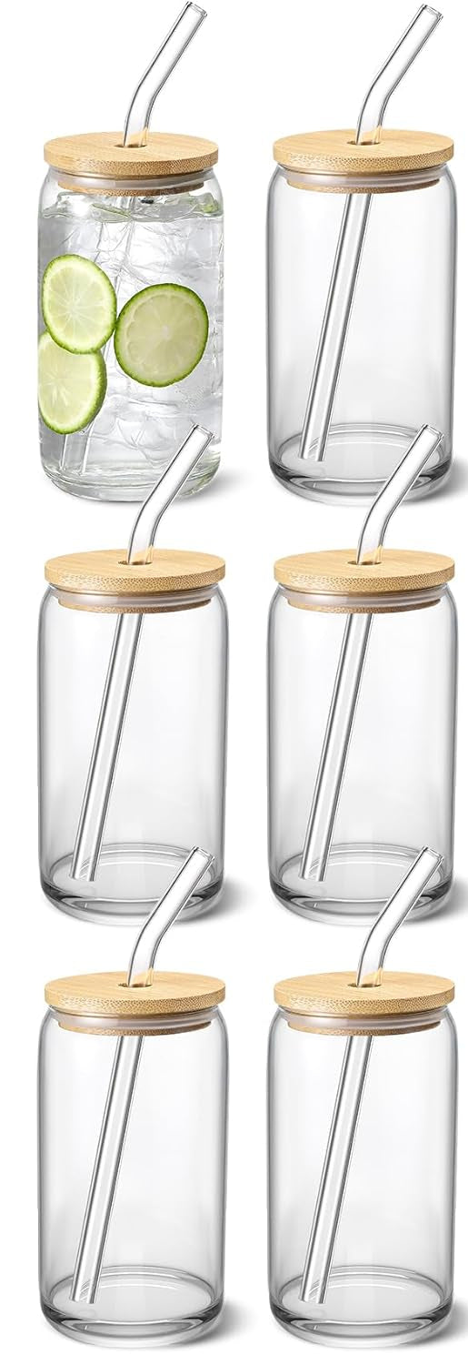 🌿 Bamboo Lids with Straw Holes: Safe, easy to clean, and BPA-free. They have reusable glass straws and eco-helpful matching bamboo lids, such as sangria, fruit punch and bubble tea. And they make a nice combination to be an out-carry drinking glassware.