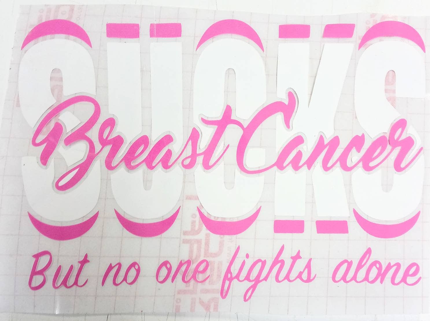 Our "Breast Cancer Sucks" heat transfer design is perfect for showing your support.