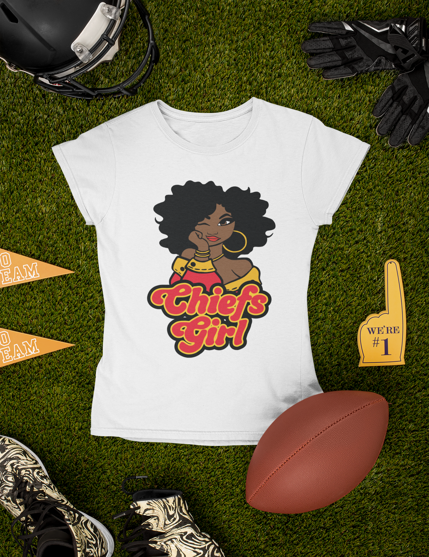 Our "Chiefs Girl " heat transfer design is perfect for celebrating your team.