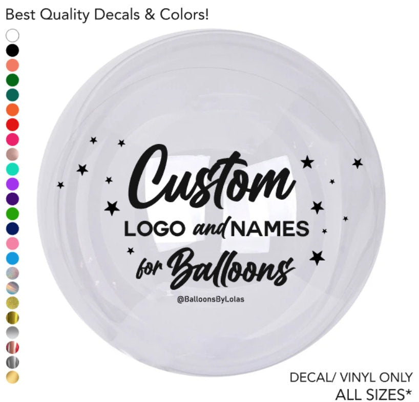 DIY Custom Logo or Name Decal for Balloons , options for all sizes, decal/vinyl only, birthday party, bridal, wedding, gift for her him