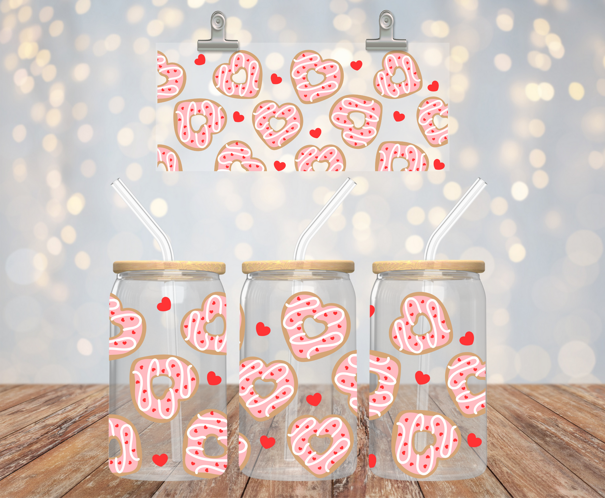 Heart Cookies - 16oz Libby Glass with Lid and Straw