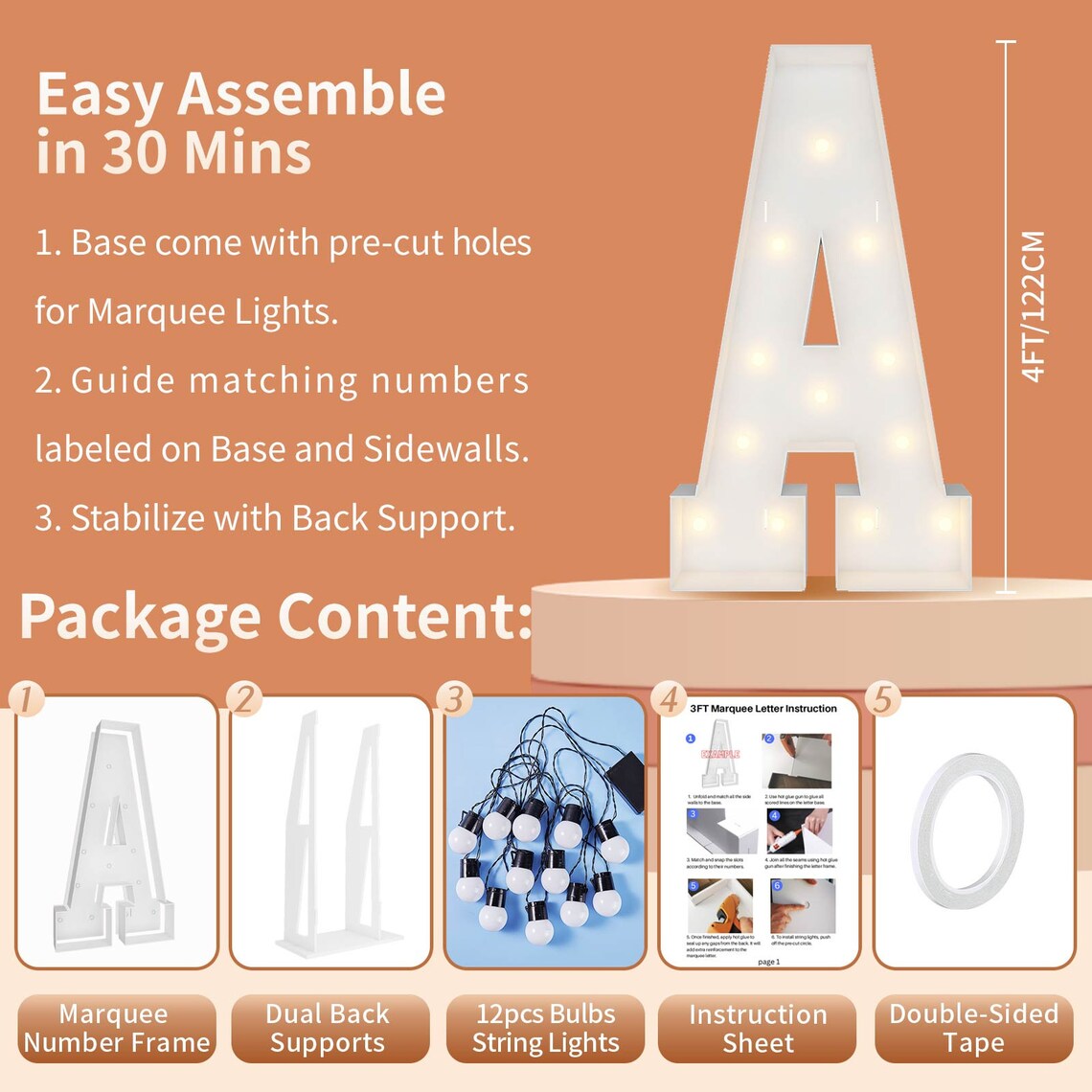 Marquee Letters (A-Z), Big Light Up Letters, Pre-cut, Large Letter, Anniversary Birthday Wedding Event Decorations