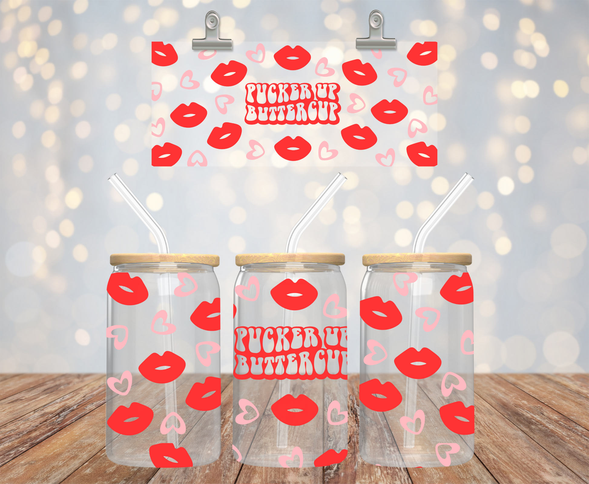 "Introducing our Valentine Pucker Up Buttercup Libbey Beer Glasses β the perfect blend of love and style in every sip! These 16 oz. glass tumblers elevate your drinks with a romantic touch.